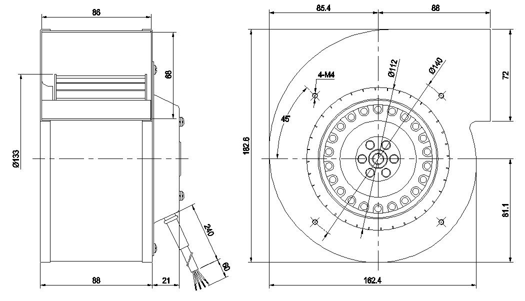 本風機由直徑為φ92外轉(zhuǎn)子結構的交流異步電動機,配以直徑為φ133金屬前彎葉輪和金屬噴漆蝸殼構成一體,具有結構緊湊、體積小、重量輕、安裝方便等特點。該風機具有較高的靜壓,廣泛用于孵化場均勻散熱,也可以用在室內(nèi)管道除塵、排氣、空氣凈化等場合。